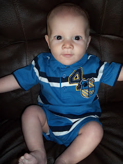 This is how I found him when I got out of the shower one day...thought he was still a sleep, but nope he is one funny kid. He has one of Riley's hats on!